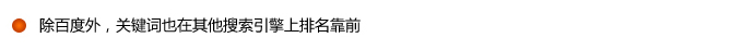 包裝印刷網 與Baidu、360、sogo、google、soso等搜索引擎強強聯合,不僅為包裝印刷企業提供行業門戶平臺宣傳推廣,同時也為包裝印刷企業爭取搜索引擎增值服務,提供Baidu、360、sogo、Google、soso等優化推廣服務!多個搜索頁面,沖擊采購者眼球!